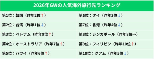 2026年のGWは、円安や国際情勢の変化といった外部環境を背景に、旅行者のコストや移動に対する意識が高まる中、渡航先選びに変化が見られました。近距離渡航先への需要の高まりに加え、東南アジアをはじめとする中距離エリアへの広がりも見られ、海外旅行における選択肢はより多様化しています。