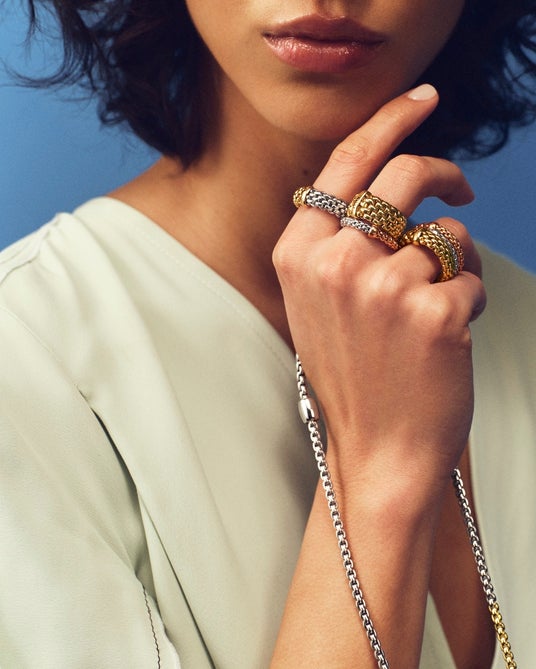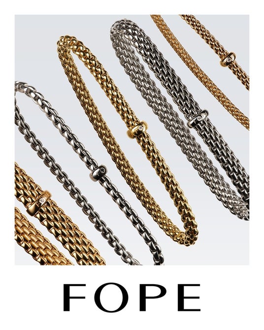 イタリア発ファインジュエリー「FOPE (フォッペ)」は、創業時からデザイン、製造、パーツまで、工程のすべてを自社工房で完結するマニュファクチュールなジュエリーブランドです。