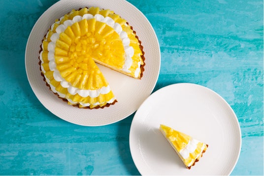 台湾産の「金鑽(ゴールドパイナップル)」は、初夏を思わせるような鮮やかな金色、芯まで美味しいと言われるほど柔らかく、濃厚な甘味とバランスの良い酸味が人気の高級パイナップル。さっぱりとした軽いヨーグルトクリームをのせたアーモンドタルトに、旬の完熟したゴールドパイナップルをたっぷりと飾りました。