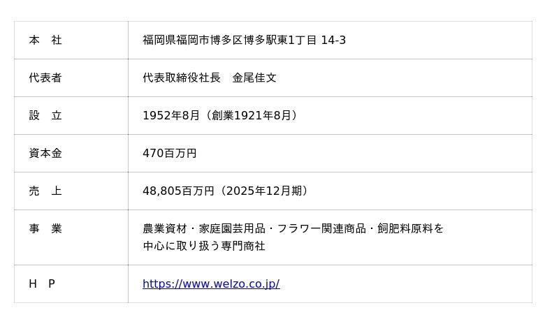 私たちwelzo(ウェルゾ)は、持続可能な社会と人々の暮らしを豊かにする商品やサービスを提供するイノベーションカンパニーです。農畜水産業、食品産業、園芸・花卉、住環境など幅広い分野において、BtoBを中心とした専門性の高いソリューションを展開し、国内に24拠点を構えています。創業100年を超える歴史で培った「育てる力」と、地域や暮らしの現場に価値を「届ける力」を掛け合わせ、川上から川下まで一貫したバリューチェーンを構築。ひとびとの豊かな食文化と、しあわせな未来を開拓していきます。