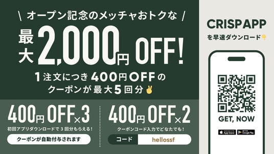 1. 初回アプリダウンロードクーポン(400円OFF×3回分)