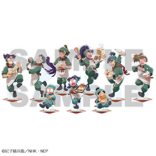 今回は「調理実習」をテーマにした忍たまたちの描き下ろしイラストを使用したアクリルスタンドや缶バッジ、2連アクリルキーホルダーなど様々なグッズを展開いたします。