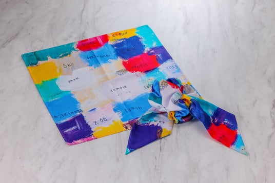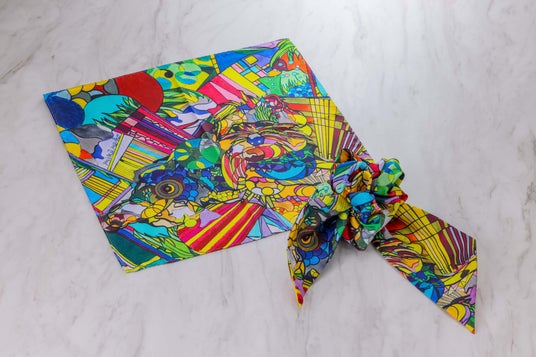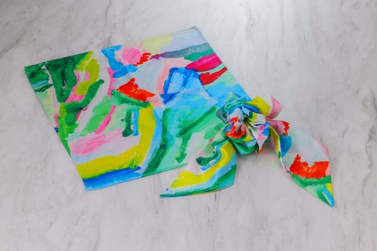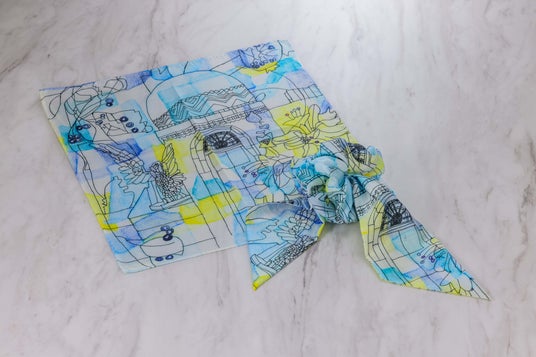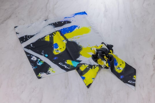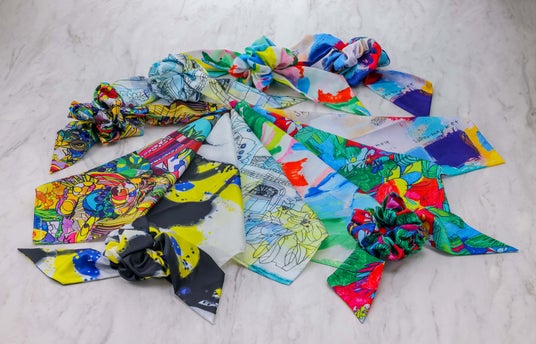 アール?ブリュット作品を取り入れたコサージュスカーフやポケットチーフ