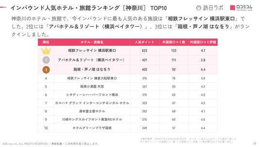 <インバウンド人気ホテル・旅館ランキング[神奈川編] TOP10>