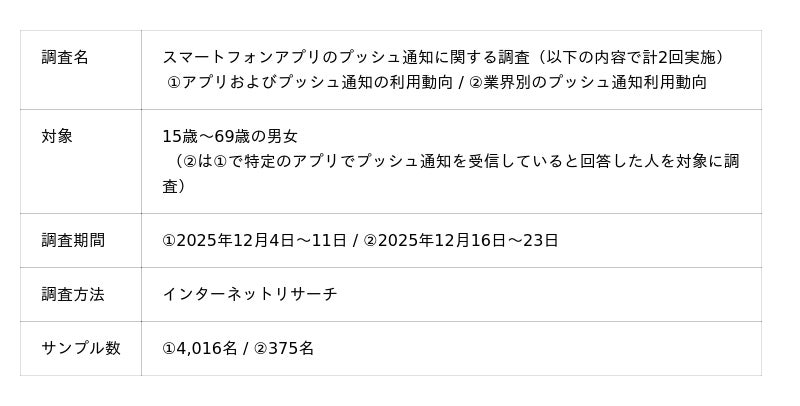 店舗集客や販促を目的とした企業のOMOアプリ開発やマーケティング支援、ソリューション導入において300以上の実績を持つ株式会社アイリッジ(本社:東京都港区、代表取締役社長:小田 健太郎、東京証券取引所グロース:3917、以下「アイリッジ」)は、15歳から69歳の男女4,016名を対象に「スマートフォンアプリのプッシュ通知に関するアンケート」を実施し、調査結果をまとめましたのでお知らせします。