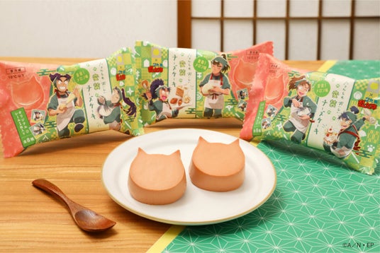 こだわり:ねこの形がキュートな“にゃんともおいしい”シリーズから「忍たま乱太郎」とのコラボ限定フレーバーが登場!六年生がドクタケ忍者隊に変装しているシーンをモチーフに、赤いメロン風味のチーズケーキに仕上げました。爽やかなメロンの香りがチーズケーキと絶妙にマッチした初夏にぴったりな味わいです。