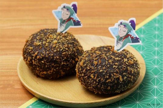こだわり:潮江文次郎をイメージしたコラボ限定パン。鍛練熱心な潮江文次郎にぴったりな、忍者の携帯食「兵糧丸」をモチーフに、ふんわり柔らかな生地で、もちもちのきな粉わらび餅とやさしい甘さのあんこを包みました。仕上げにもきな粉シュガーをまぶし、和テイストな味わいをご賞味いただけます。