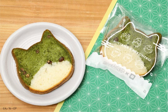 ねこの形がキュートな『ねこねこ食パン』から、忍たまの六年生の制服の緑色をイメージしたコラボフレーバーが登場。よもぎと小豆を練り込んだ生地で忍者の「頭巾」を再現し、はちわれ模様に仕上げました。また、SNSで話題の“にゃんともおいしい”シリーズも「忍たま乱太郎」とコラボいたします。