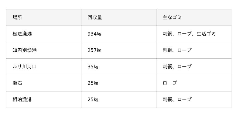表.海中ゴミの回収結果