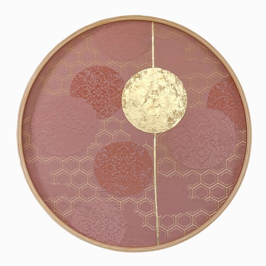 本展示では、当ホテル2階共用ラウンジの空間に着想を得て、「都市の夜ににじむ光と色彩」をテーマに制作された新作44点を含む計53点を展示。テキスタイルの繊細さと時間の層を重ね、静けさの中に宿る華やかさを、素材と色彩のレイヤーによって表現します。作品によっては、アンティークの桐たんすを額材として用いており、素材を余すことなく活かす表現も見どころの一つです。