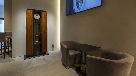 空間デザインにおいても、繊細な時計のパーツを思わせる金属素材を随所に採用しています。時間とともに移ろう陽ざしが金属の表情に反射し、陰影や輝きが刻々と変化することで、空間の中に静かに時間の流れを感じさせます。