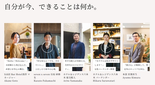 シマダグループの一社である、シマダハウス株式会社(東京都渋谷区、代表:島田一成)は、ホテル・飲食・米・お酒事業を展開する「ホスピタリティ事業部」の独自のリクルートサイトを新設・公開しました。求職者が「ここで働く自分」を鮮明に想像できるよう、社員一人ひとりの働き方にフォーカスしています。