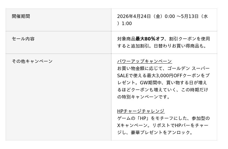 ゴールデン スーパーSALEについて