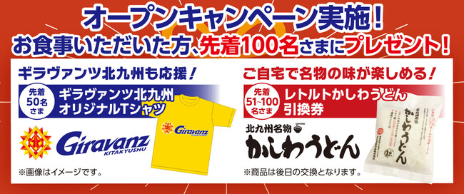 ゾーン戸畑店ではオープンを記念して、お食事いただいた方、先着100名さまにプレゼントを行います。