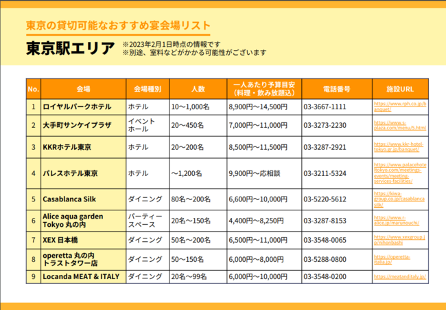 第2章 東京の貸切可能なおすすめ宴会場リスト