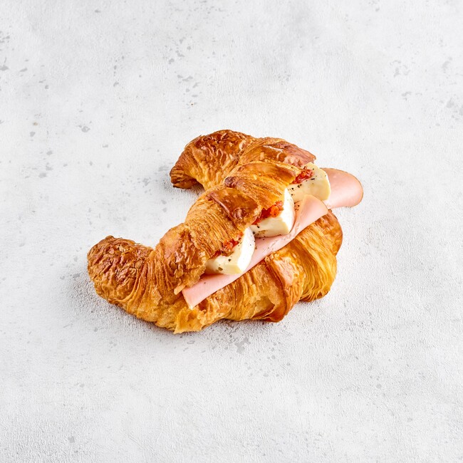 説明:デュラム小麦クロワッサンにロースハムと、カマンベールチーズ、ドライトマトをはさみブラックペッパー、オリーブオイルで仕上げました。