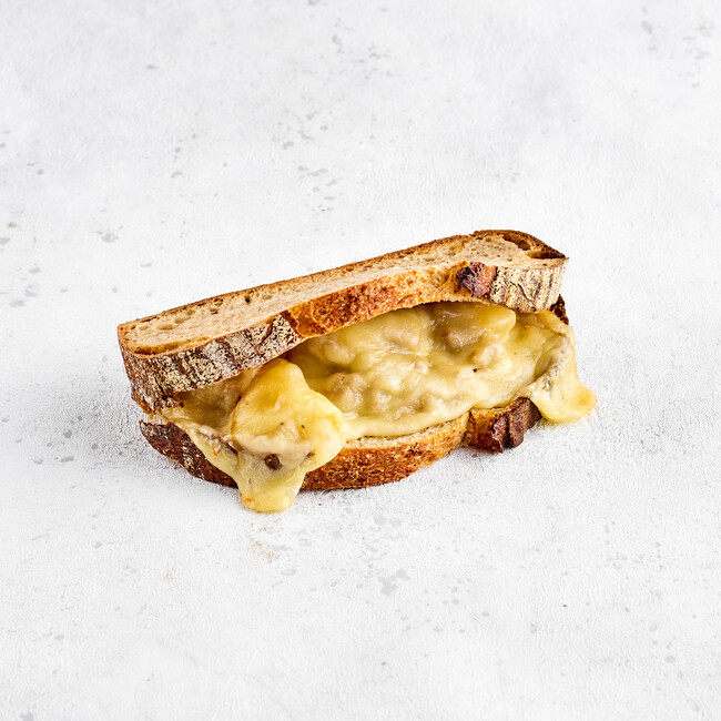 説明:濃厚なベシャメルソースと香り高いスモークベーコンをカンパーニュでサンドし焼き上げました。こんがりと焼けたチーズのコク深さが広がります。