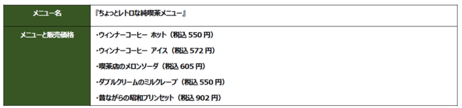 ●併設の喫茶コーナーにて提供の『ちょっとレトロな純喫茶メニュー』概要