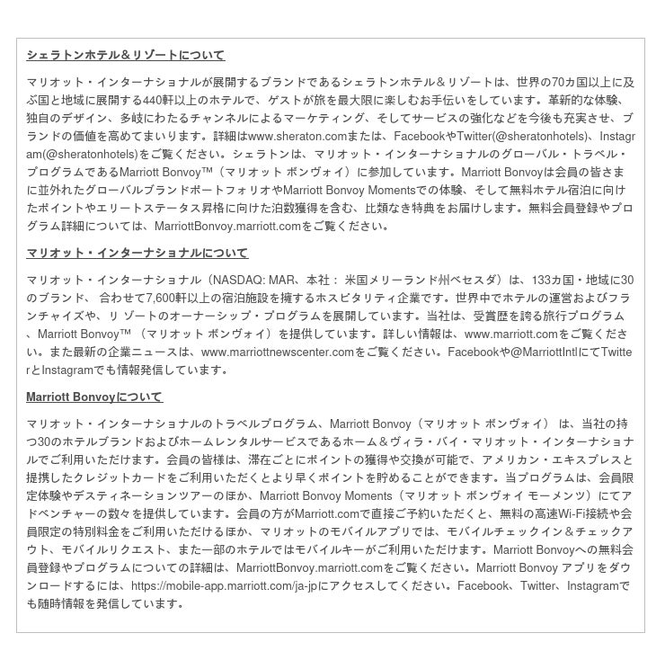 横浜ベイシェラトン ホテル&タワーズでの対策についてはホームページにもご案内しております。こちらも併せてご確認ください。https://yokohama-bay-sheraton.jp/news/13/