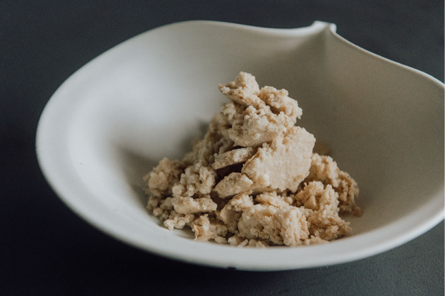酒粕は、日本酒を作る過程で出てくる副産物で、現代においてはその多くが廃棄されています。酒粕は、発酵による作用で旨味と複雑みが増大した発酵食材で、昔は酒粕の収益だけで従業員の給料が賄えるほどの需要があったと言われています。それほど重宝されてきた食材でした。美容や健康に役立つ栄養素が数多く含まれることもわかっていて、近年は健康食として注目されつつありますが、現代の食生活に馴染む利活用方が見つかっておらず、優れた機能面とは裏腹に、一部は廃棄されているのが実情です。