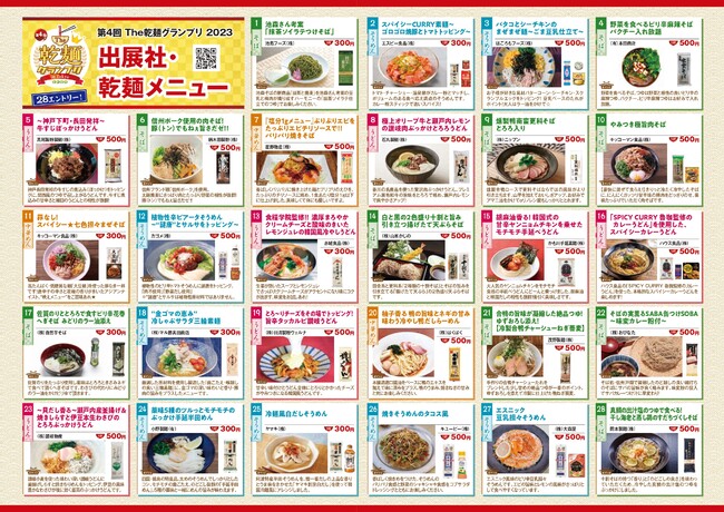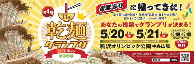 株式会社日本アクセス(所在地:東京都品川区、代表取締役社長 社長執行役員 CEO:服部真也)は、5月20日(土)・21日(日)の2日間、駒沢オリンピック公園中央広場にて、日本最大級の乾麺の祭典「The 乾麺グランプリ 2023 in Tokyo」を開催いたします。2019年の開催から4年ぶり、第4回目となる今回は乾麺メーカー、調味料メーカーが思考を凝らした28メニューがエントリー。各社オリジナルで考えた、至極の乾麺メニューをお披露目します!