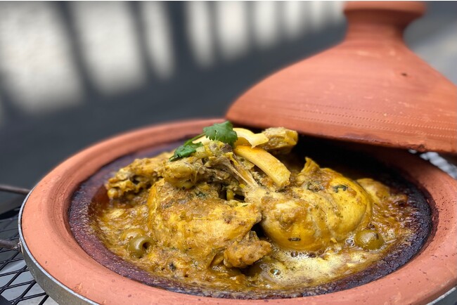 メインのタジン料理は日替わりで3種類を用意。旬の野菜や鶏・牛・ラムなどの肉、魚介類を使った味わい深い一品です。タジンは水が貴重とされる砂漠で生まれた調理法で、食材の持つ水分で蒸し煮にします。旨味が凝縮され、スパイスの香りを引き立たせるのに加えて、食材の栄養を逃がさない調理方法でもあります。 サラダも日替わりで3~4種類を提供します。旬の野菜を使用し、キュービック状にして色々なスパイスで味付けをするモロッカンサラダは、見た目も鮮やかで食欲をそそります。その他、ピタパンにグリルした肉と野菜を挟んだサンドイッチ「シャワルマ」や、モロッコの代表的な飲み物であるミントティー、「ノスノス」というカフェラテなどのドリンクも販売いたします。