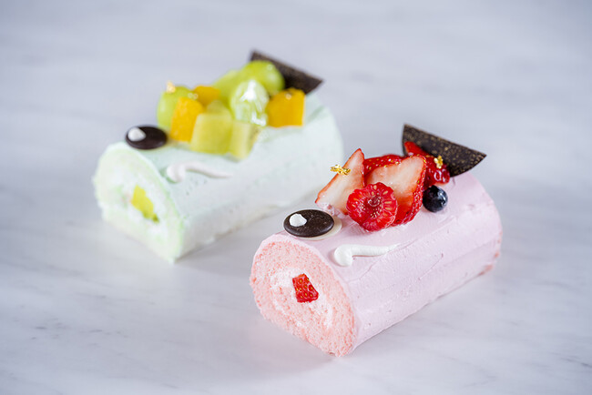 お子様の健やかな成長への祈りを託す“こいのぼり”を模したロールケーキ。ジューシーなメロンを巻いたグリーンと、甘酸っぱいいちごを用いた赤いこいのぼりの2本セットです。 【販売期間】2023年4月29日(土・祝)~5月5日(金・祝) 【価格】2,000円(消費税込) ※割引対象外、3日前までの要予約 【サイズ】9cm×6cm(1本)