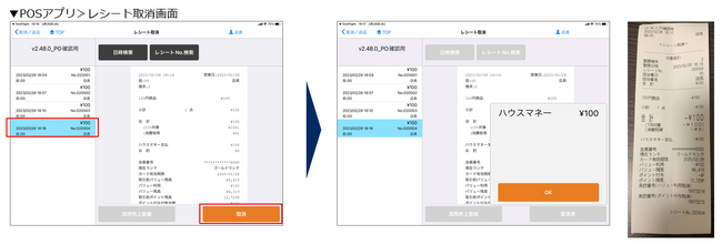 1:レシート取消画面でハウスマネー、ポイント利用のあった会計を選択
