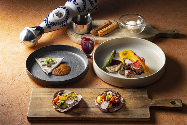 在日メキシコ大使館シェフであるヘルマン・オリーバ氏とメトロポリタングリル料理長フィナリー・セメス、二人のシェフのこだわりを一度に楽しめる贅沢なディナーコースでは、メキシコの伝統的な料理をはじめ、メトロポリタングリルが得意とする桜の薪と炎を駆使した料理をクラセアスールのテキーラに合わせてお楽しみいただけます。