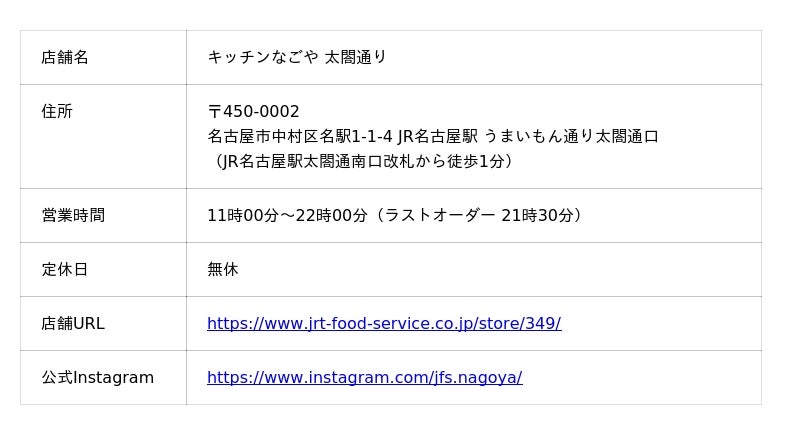 ジェイアール東海フードサービスが運営する、JR名古屋駅・名古屋うまいもん通りの「驛釜(えきかま)きしめん 太閤通り」「キッチンなごや 太閤通り」ではオリジナルコラボメニュー販売、「名古屋・驛麺(えきめん)通り」では東海道新幹線をご利用の上、店舗にて食事された方を対象にオリジナルステッカーの配布を実施します。
