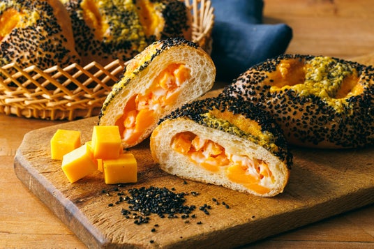 ■チーズとごまのパンシュレッドチーズ、ダイスチーズ、チーズソースの3つのチーズを合わせた濃厚な味わいに、黒ごまの香ばしくプチプチとした食感がいいアクセント。