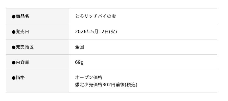 株式会社ロッテ(東京都新宿区、代表取締役社長執行役員:中島英樹、以下ロッテ)は、ロングセラーブランド「パイの実」から、新商品「とろリッチパイの実」を2026年5月12日(火)より発売します。
