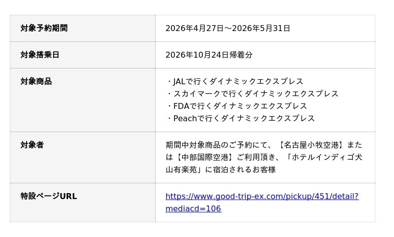 日本空輸株式会社(本社:東京都港区、代表取締役:岡下 敏也)が運営する旅行予約サイト『グッドトリップエクスプレス(グットリ)』は新緑に包まれる「リトリート」と、戦国ロマンが交差する初夏の特別キャンペーンを開催します。
