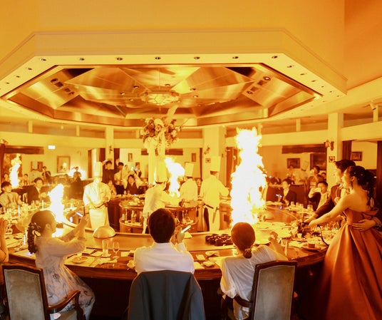 会場全体に炎があがる大迫力の「一斉フランベ」演出