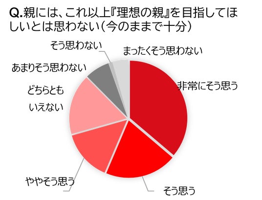 「親には、これ以上『理想の親』を目指してほしいとは思わない(今のままで十分)」と回答した子どもは約7割以上(70.6%)の結果に。