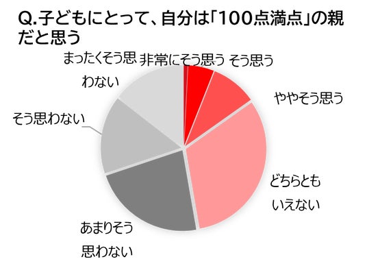 「子どもにとって、自分は「100点満点」の親だと思う」という問いに対し、約半数以上(52.8%)が「そう思わない」と回答。