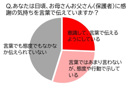 トピック3.:心の中では全肯定しつつも、お母さんお父さんへ「感謝を伝えられていない」層が約半数。