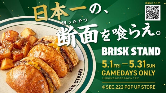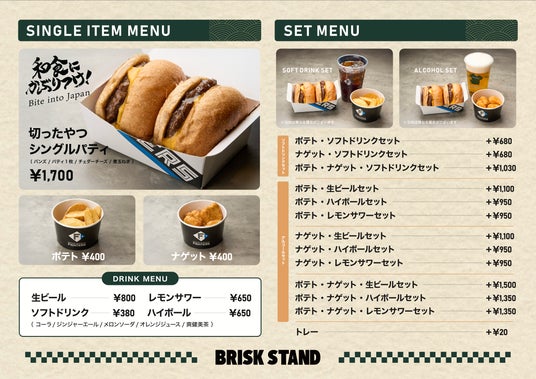 出店では、BRISK STANDの看板商品である「切ったやつシングルパティ」を販売たします。球場という非日常空間の中で、BRISK STANDならではの一体感ある食体験を提供してまいります。