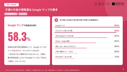 子連れ外食の情報源はGoogleマップが58.3%で最多