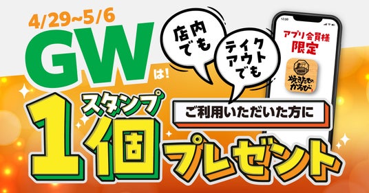 株式会社物語コーポレーション(本社:愛知県豊橋市/代表取締役社長:加藤 央之)が全国37店舗を展開する、「焼きたてのカルビ丼」と「ユッケジャンスープ」の専門店『焼きたてのかるび』は、2026年4月29日(水)より、GWキャンペーンとして、「アプリスタンプ プレゼントキャンペーン」を実施いたします。