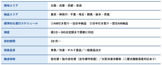 本サービスは、1車単位での定期チャーター運行を前提に、週1日から365日までの幅広い形の運行スケジュールに柔軟に対応しており、運行日数や期間に変動のある荷主企業のニーズにも応じることが可能です。