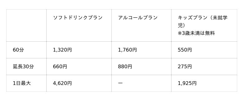 ●上記金額は税込金額です。●時間を超えた場合、自動で延長となります。●プレミアムメンバーは、初月は日割料金でご利用いただけます。●他拠点フルタイムスタンダードの対象外店舗については、公式HPをご確認ください。