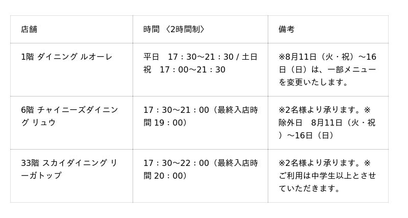 ※8月11日(火・祝)~16日(日)は、一部メニューを変更いたします。