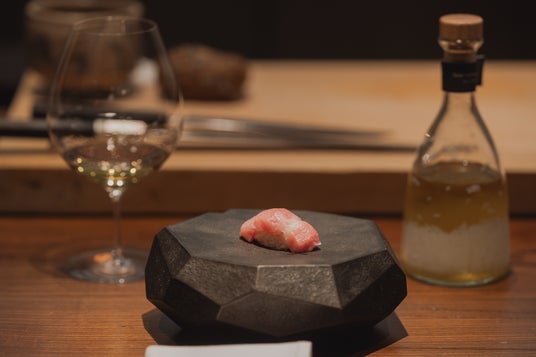 佐渡産 黒鮪の大トロとクリスタルのマリアージュがシェフの一押しのお任せメニュー