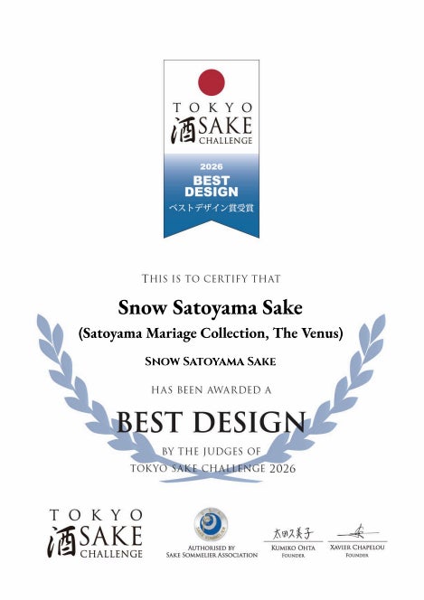 雪と里山醸造所(所在地:新潟県十日町市、代表:デュケット智美)は、イギリス・ロンドンに拠点を置く「酒ソムリエ協会(SSA)」主催の国際的な日本酒品評会「Tokyo酒チャレンジ2026」において、出品した「Snow Satoyama Sake - Satoyama Mariage Collection」シリーズ全3商品すべてが【プラチナ賞】【金賞】を受賞したことをお知らせいたします。