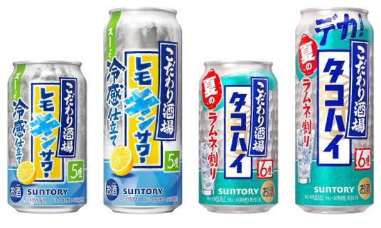 サントリー(株)は、「こだわり酒場のレモンサワー〈レモキンサワー〉」を6月23日(火)から、「こだわり酒場のタコハイ〈ラムネ割り〉」を7月21日(火)から全国で期間限定新発売します。