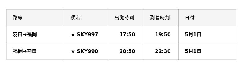 ■2026年5月/6月『羽田=福岡』線、『福岡=羽田』線臨時便一覧