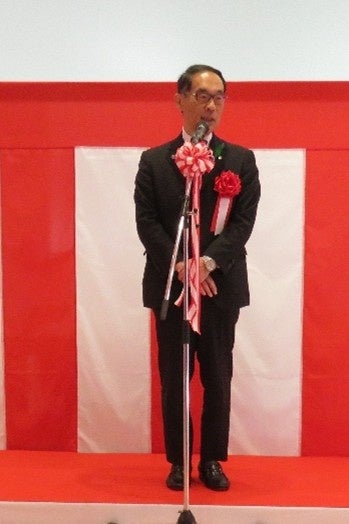 開所式当日は、埼玉県の大野知事をはじめとする関係者・取引先の皆さまにご出席いただき、神事およびテープカットを執り行いました。式典では、当社社長村岡より、「地域の皆さまに愛される工場を目指し、『おいしい しあわせ』をお届けできるよう、安全・安心な製品づくりに努めていく」との挨拶がありました。