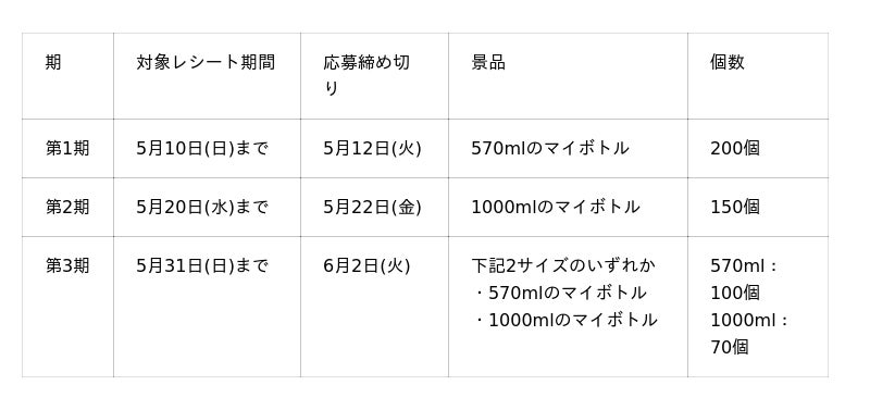 ・抽選で520名様にマイボトルが当たる、プレゼントキャンペーンも実施。
