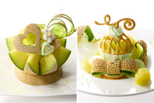 ハートやリボンが美しく飾られた、マスクメロンを味わう一皿
